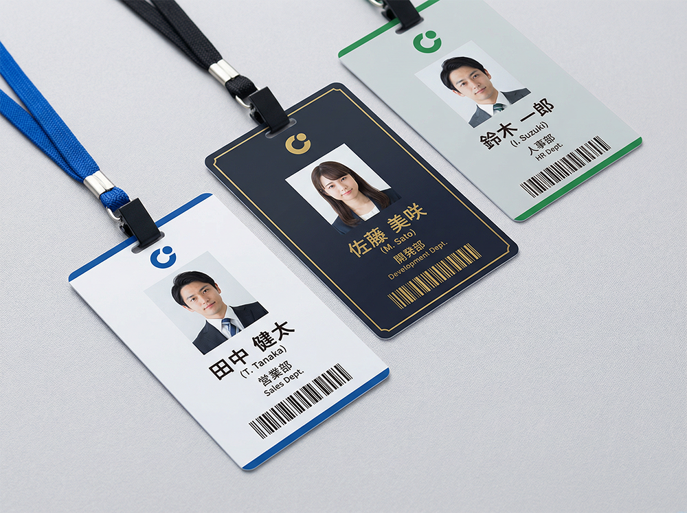 来訪者にプロフェッショナルな印象を与えるエントランス看板や、セキュリティと帰属意識を高める社員証(IDカード)の印刷など、オフィスに必要なツールをまとめてご用意します。