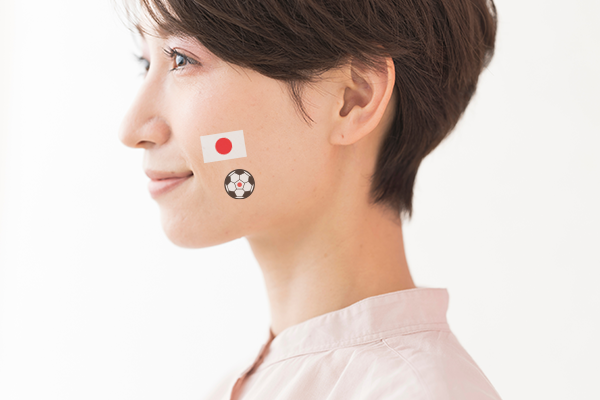 スポーツの応援時やイベントの記念グッズ、肌にはるゼッケンなどの用途として利用できるフェイスペイントシール(フェイスシール)。