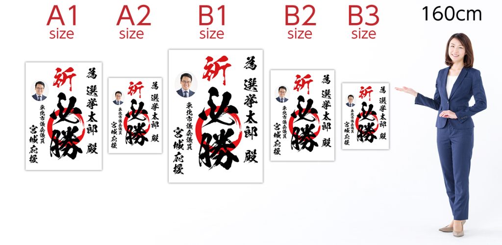 国会議員はB1サイズ、都道府県議員はA1サイズ、市町村議員はB2程度が目安です。
